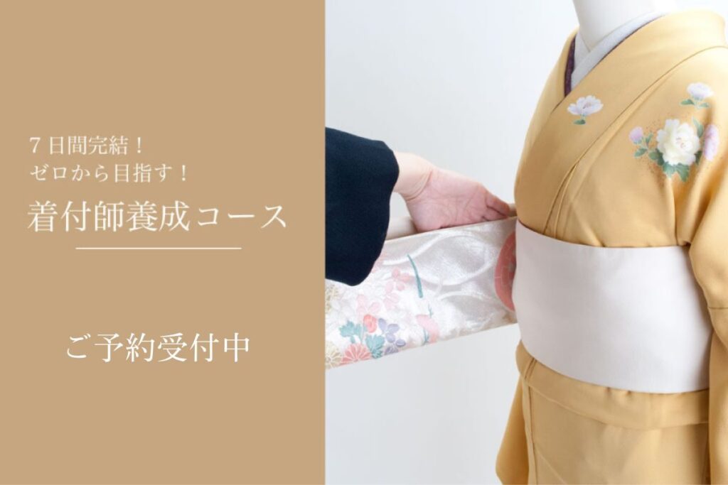 着物経験”0”の方でもプロの技術を身に着けられる着付師養成コースです。